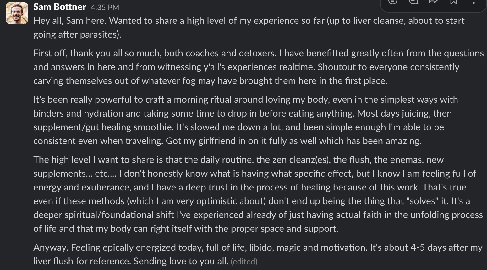"If you're telling me I'm not even close to being completely detoxed and this is how good I'm feeling I'm truly amazed"...